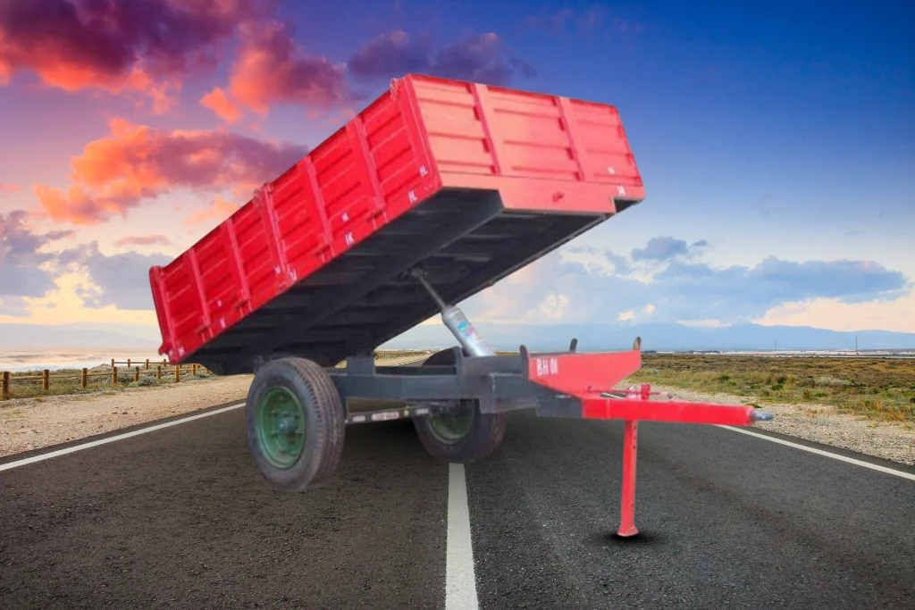 • Hydraulic Tipping Mechanism: Enables easy unloading of materials by tilting the trailer bed through a powerful hydraulic cylinder.